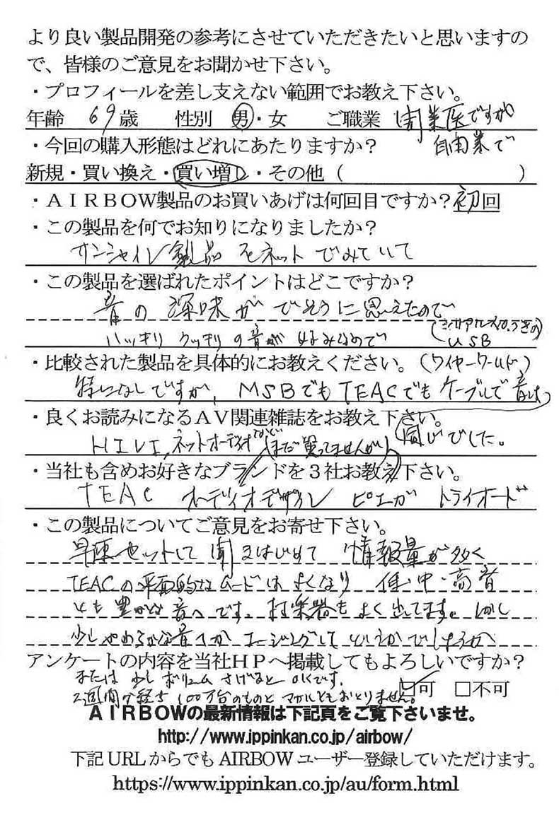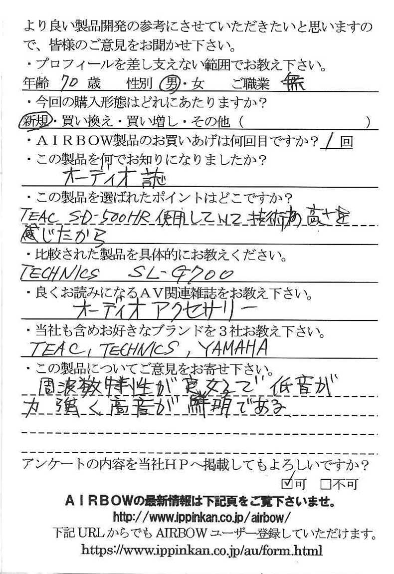 早速セットして聞きはじめて情報量が多くTEACの平均的なモードは良くなり低・中・高温とも豊かな良い音です。打楽器もよく出ています。しかし少し柔らかめな音とかエージングしてどうかでしょうか、または少しボリュームを下げるとOKです2週間が経ち100万代のものとまさるともおとりません。